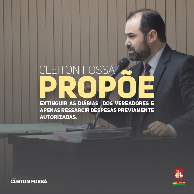 Cleiton Fossá, vereador de Chapecó, protocolou na Câmara, um Projeto de Lei 5/2020 que propõe a substituição do modelo de diárias pagas antecipadamente, pelo sistema de ressarcimento de despesas.